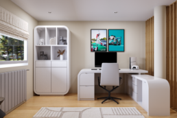 This example showcases how we transformed a 2D mood board for a real estate company’s reception and welcoming area into a fully realized 3D concept, turning their vision into a stunning reality.